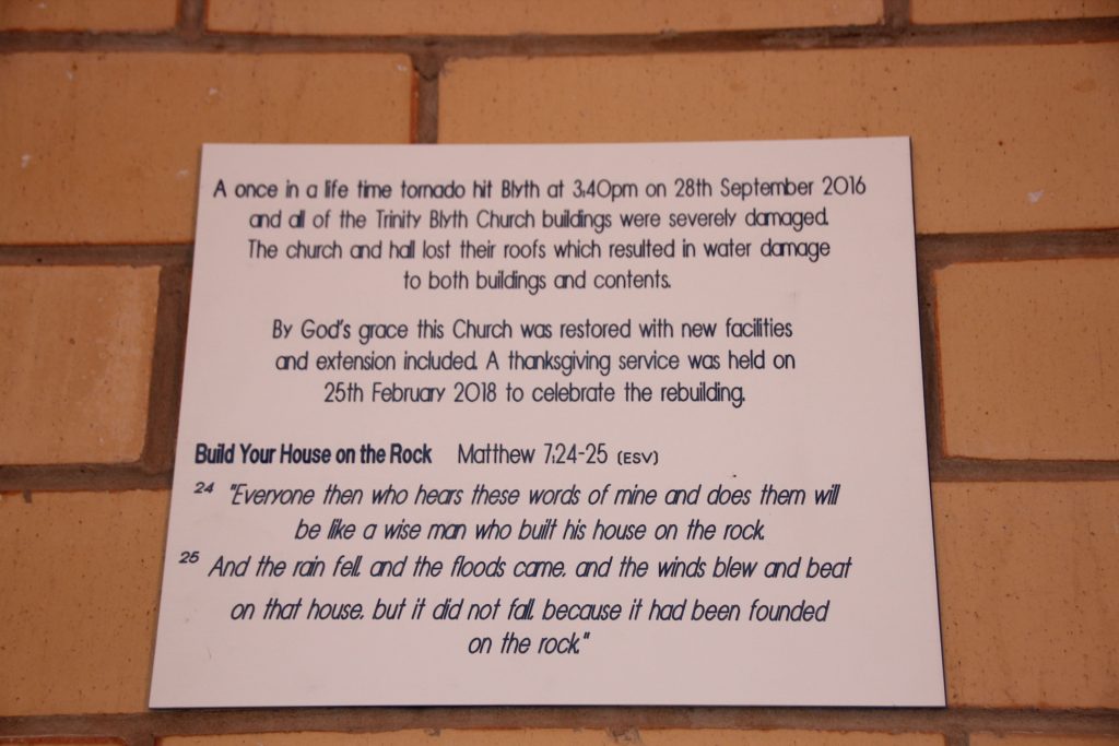 It was fantastic to see so many people support Blyth during this difficult time and we thank God that no one was physically injured during the storm.