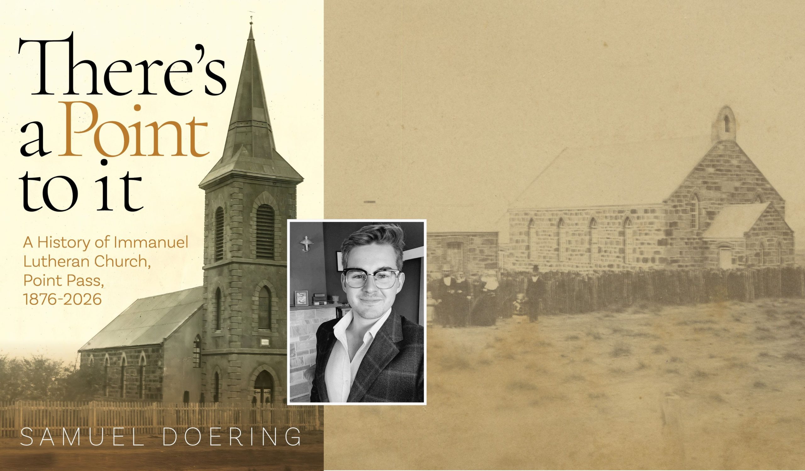 The book’s title, coined by Pastor Jacob Fabich of the Eudunda-Robertstown Lutheran Parish, operates on several levels: there is a ‘point’ – a reason – to Immanuel’s presence at Point Pass, which is grounded in faith, settlement, and community; the church literally stands at Point Pass; and Immanuel has a point of its own: the golden spire, rising skyward. The publication is being produced in partnership with Greenhill Publishing and Openbook Howden, with a formal launch scheduled for 11 April 2026.